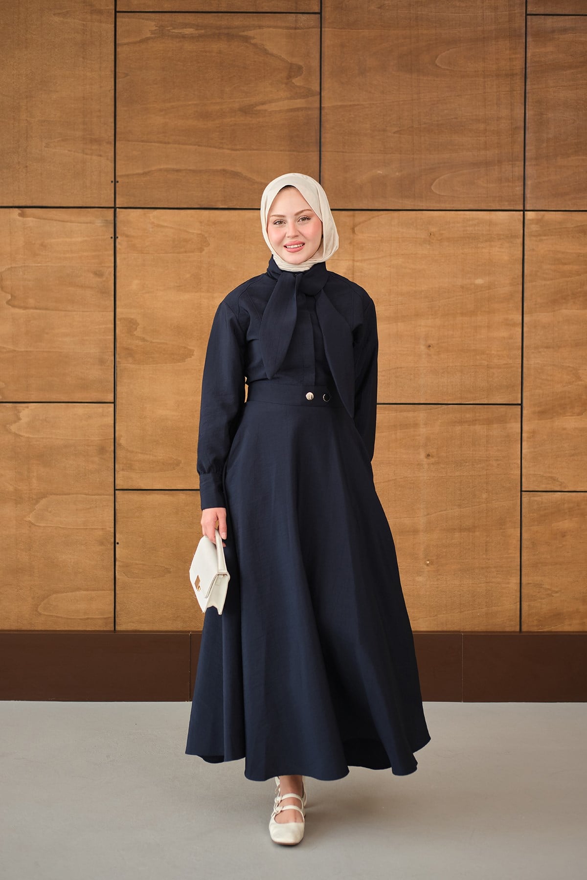Gizli Düğmeli Çıtçıt Detay Gömlekli Takım Lacivert