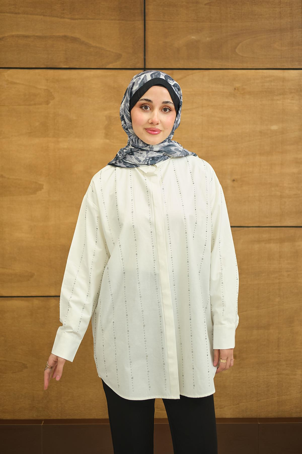 Gizli Düğmeli Ön taş Detay Regular Poplin Gömlek Beyaz