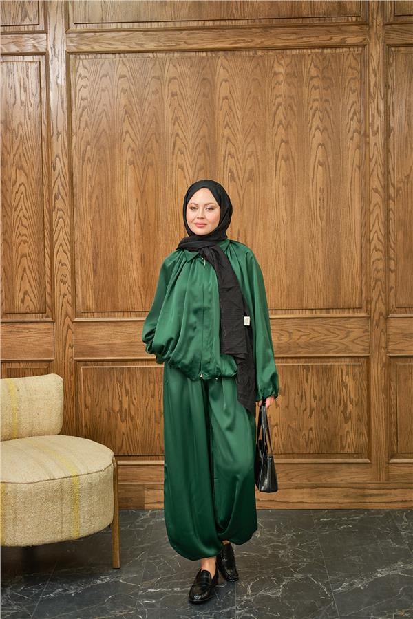 Gizli Fermuar Detay Takım Zümrüt Yeşil