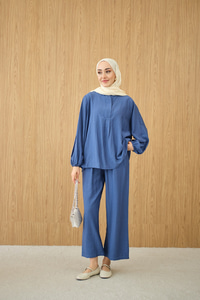 Gizli Fermuar Detaylı Müslin Takım Mavi