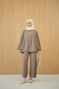 Gizli Fermuar Detaylı Müslin Takım Vizon