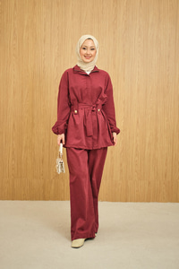 Gizli Fermuarlı Kemerli Pantolonlu Takım Bordo
