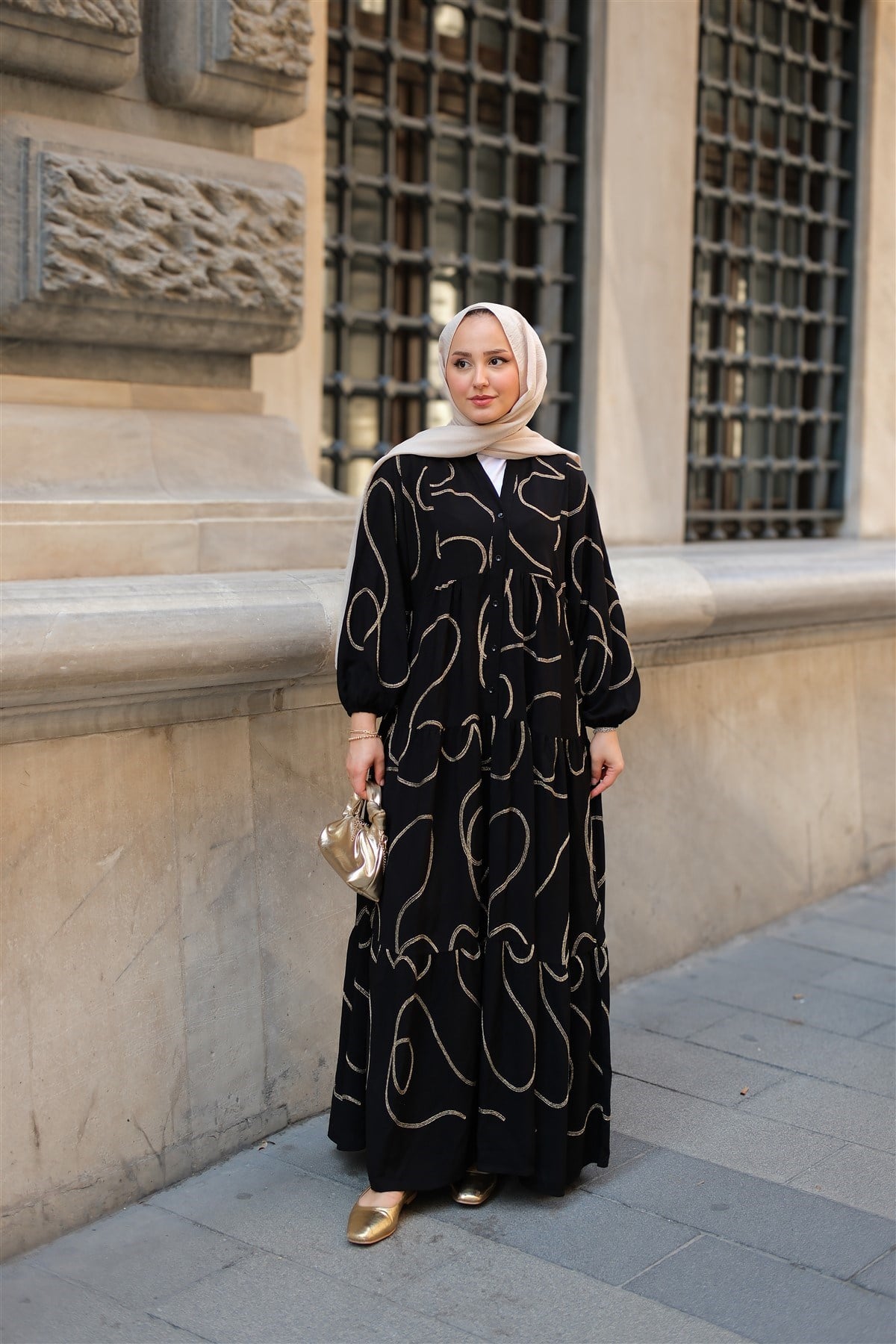 Gold Dikiş Detaylı Elbise Siyah