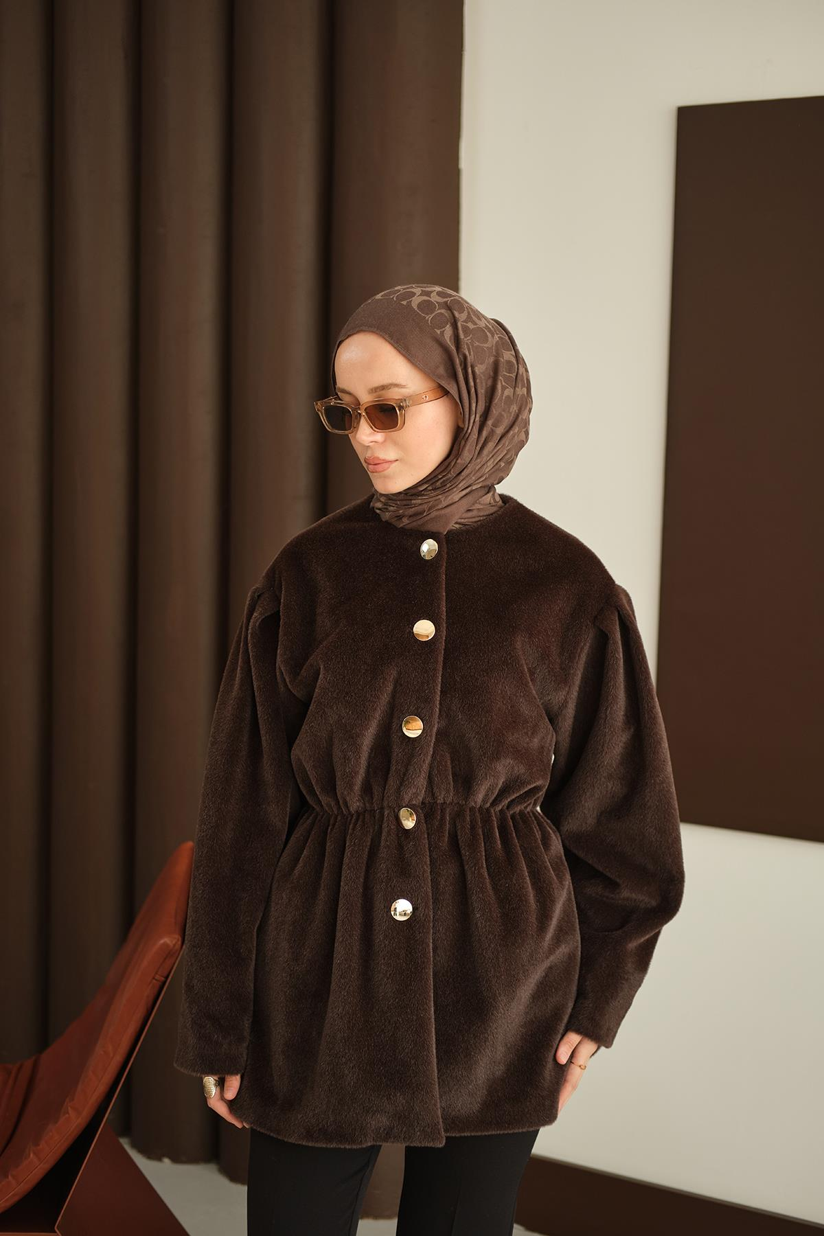 Gold Düğme Detay Kısa Kaban Kahverengi