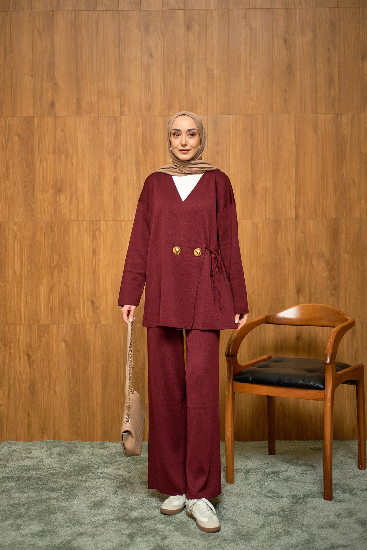 Gold Düğme Detay Takım Bordo