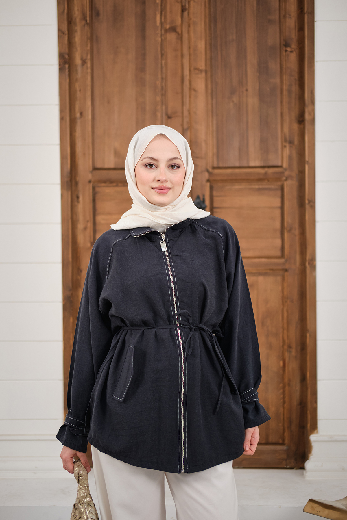 Gold Fermuar Detay Dikiş İzli Ceket Siyah