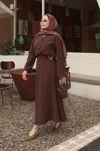 Gold Kemer Detay Gömlekli Takım Kahverengi
