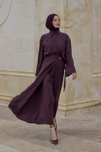 Gold Kemer Detay Dar Kalıp Gömlekli Takım Mürdüm