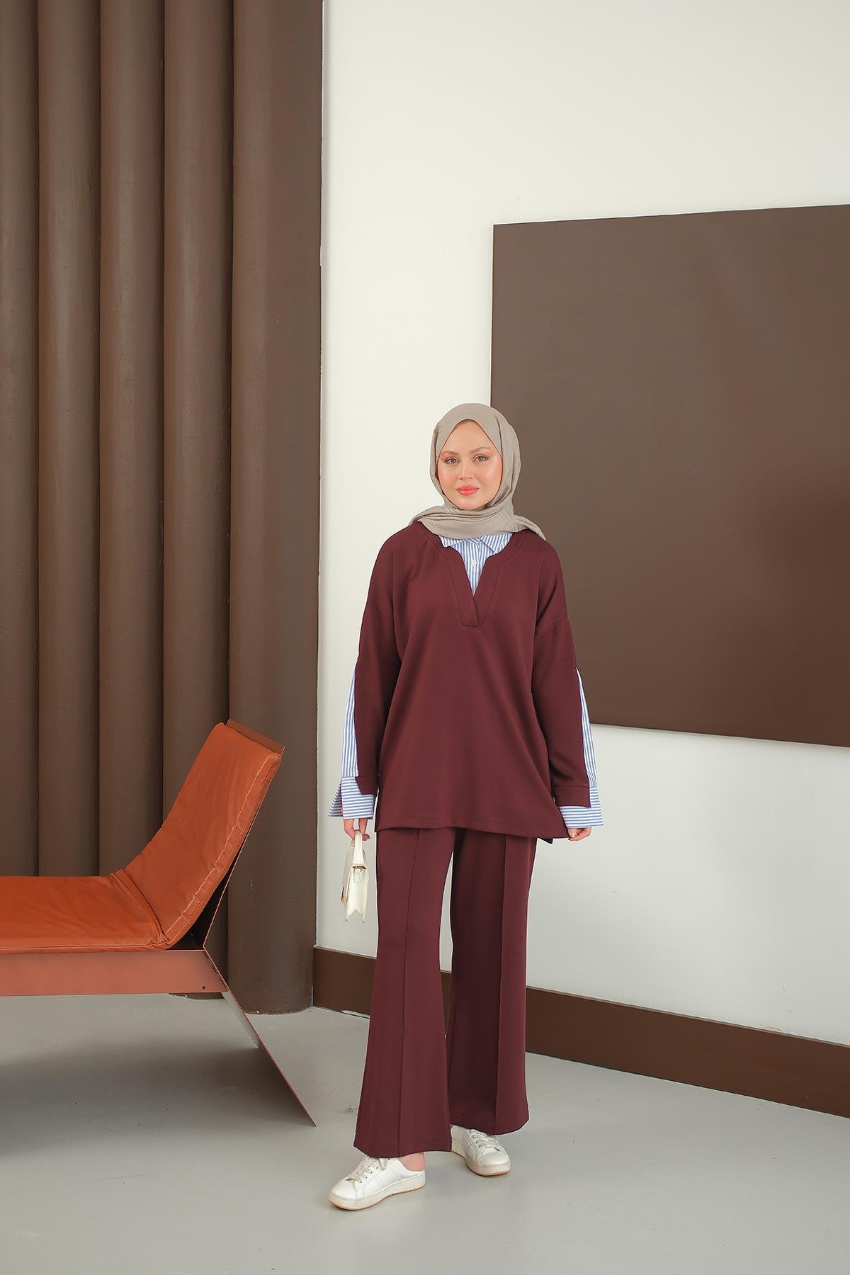 Gömlek Detay Takım Bordo