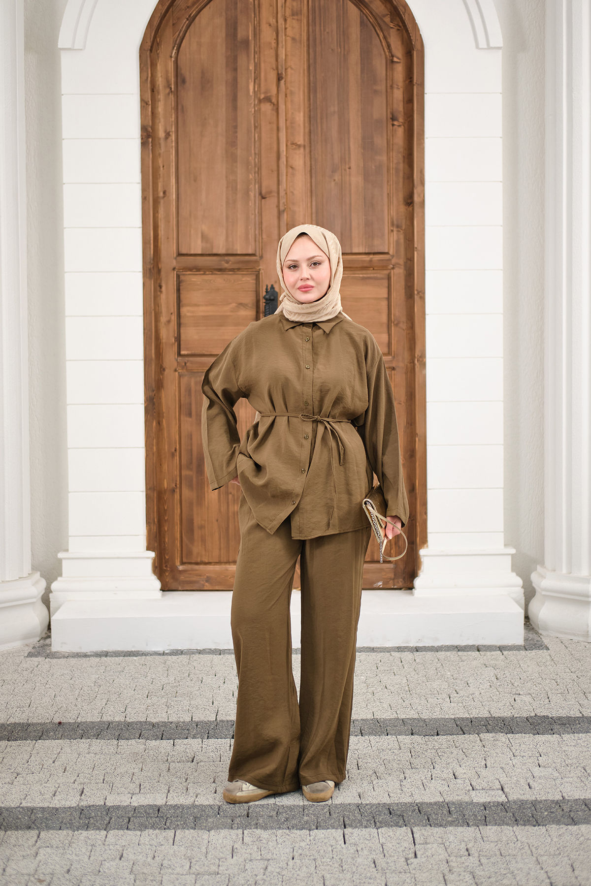 Gömlek Ve Bel Lastikli Bel Bağlamalı Takım Yağ Yeşil