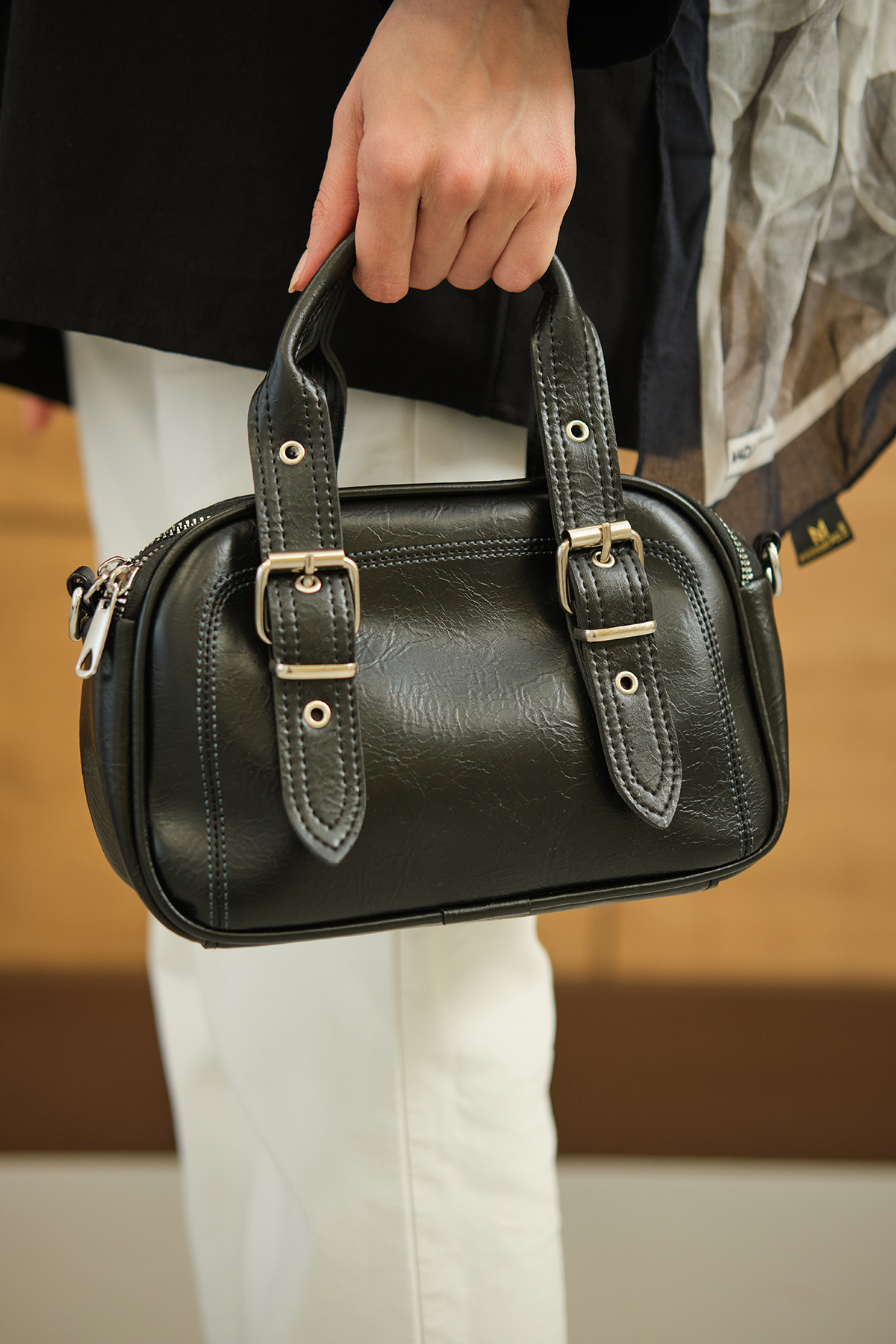 Göz Fermuarlı Saten Çanta Siyah