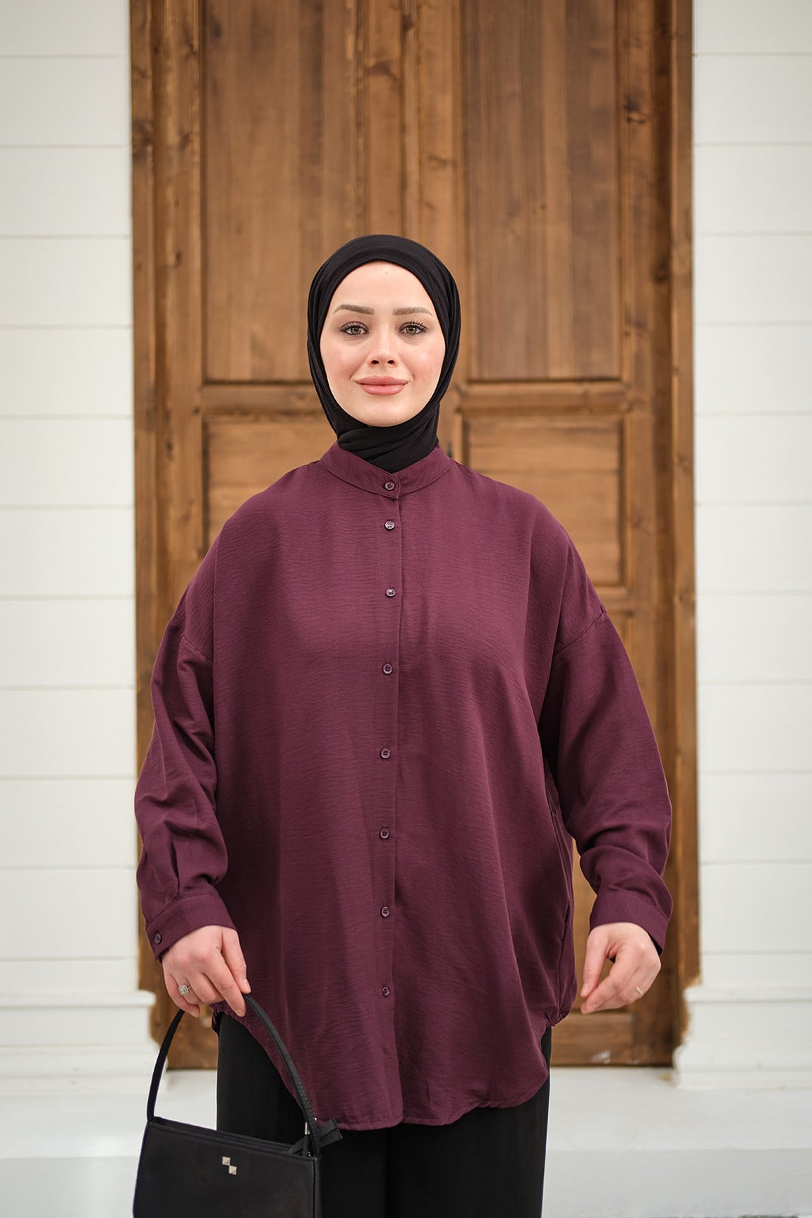 Hakim Yaka Basic Gömlek Mürdüm