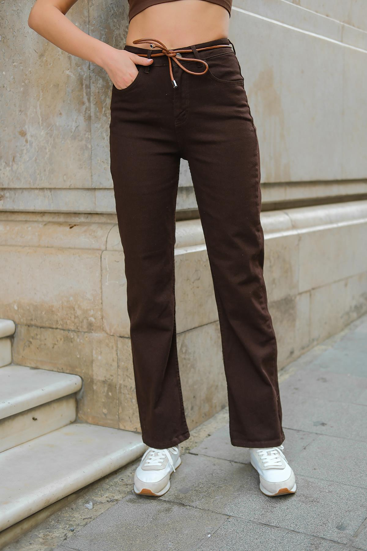 İp Kemerli Kot Pantolon Kahverengi