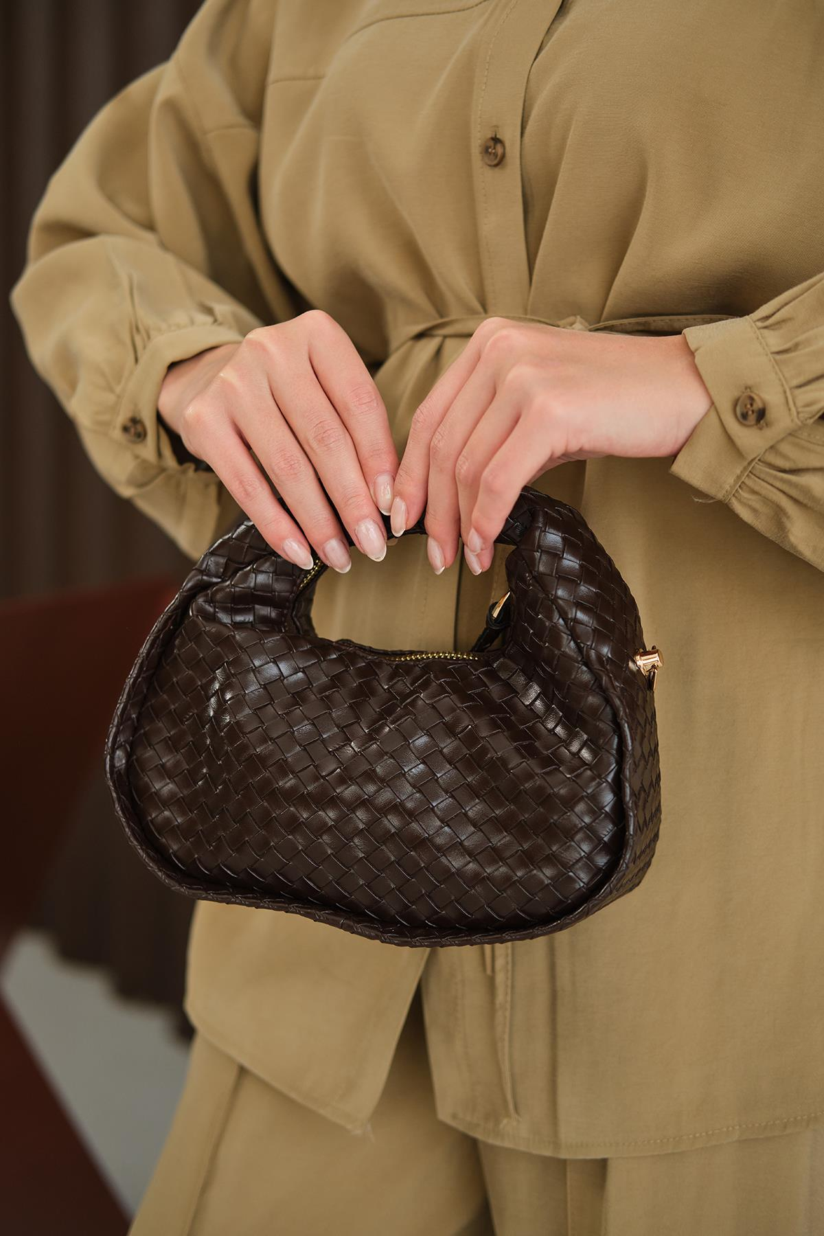 İşlemeli Gold Detay Çanta Kahverengi