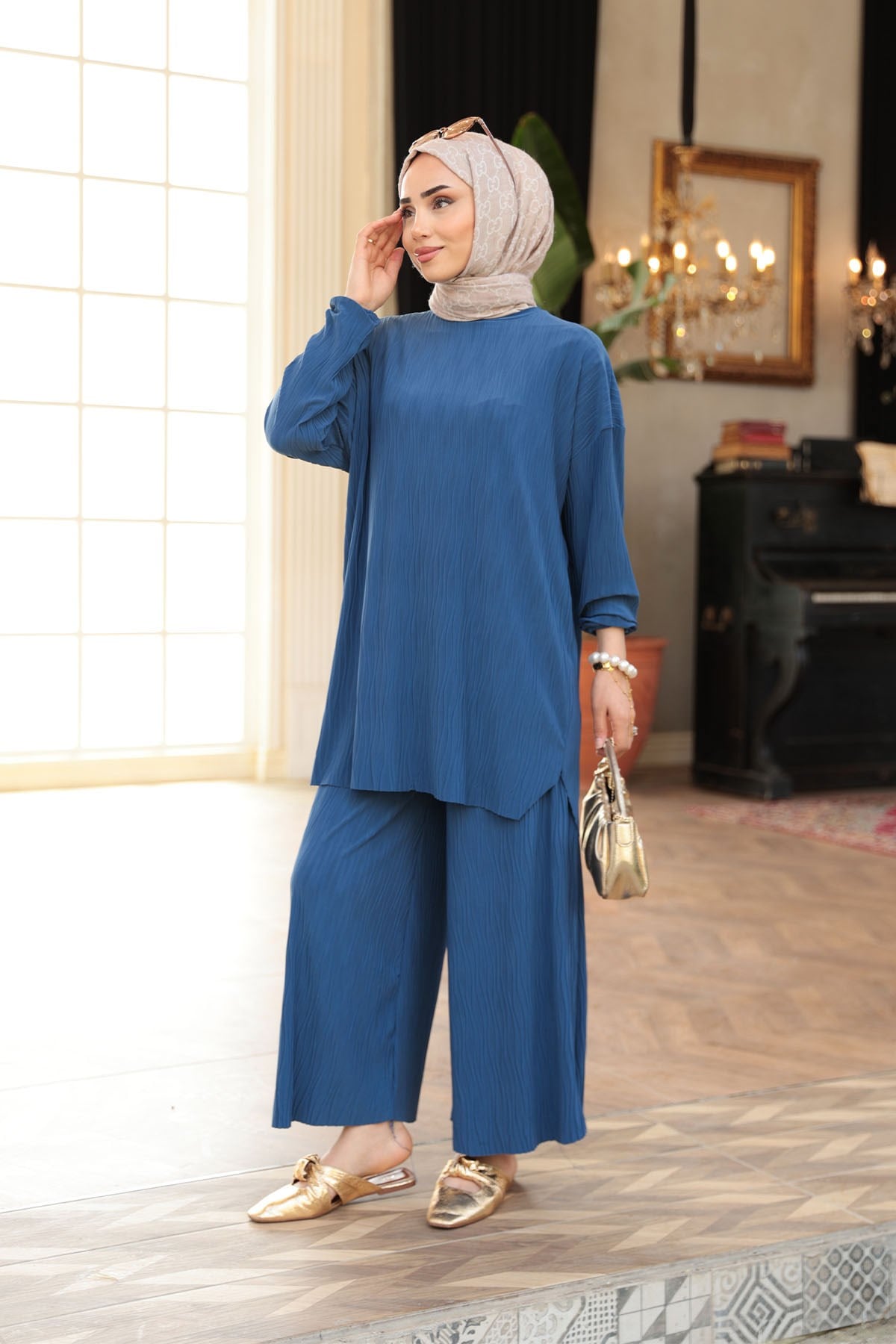 Kabarık Kumaş Takım Lacivert