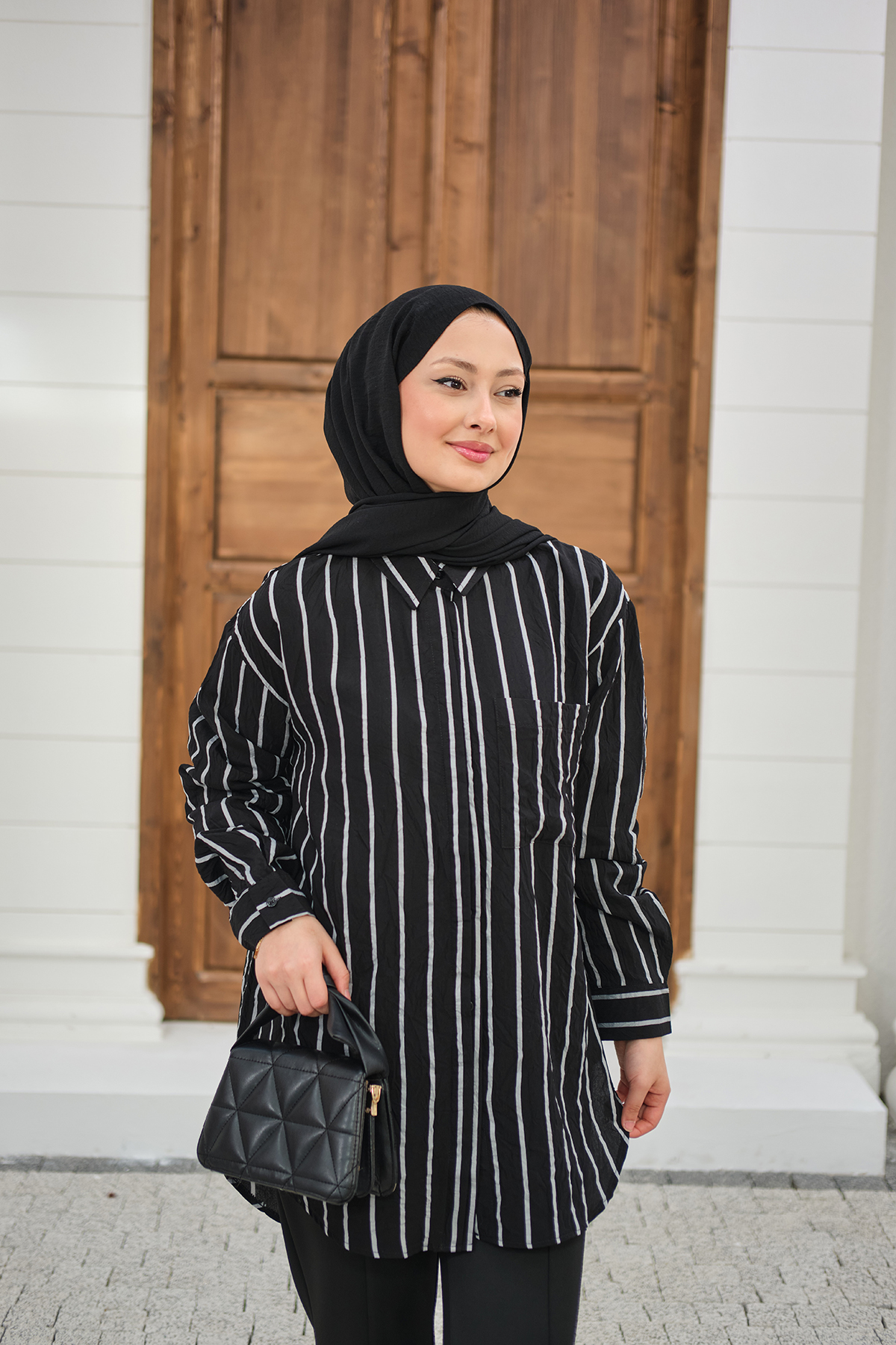 Kalın Çizgili Detay Gömlek Siyah