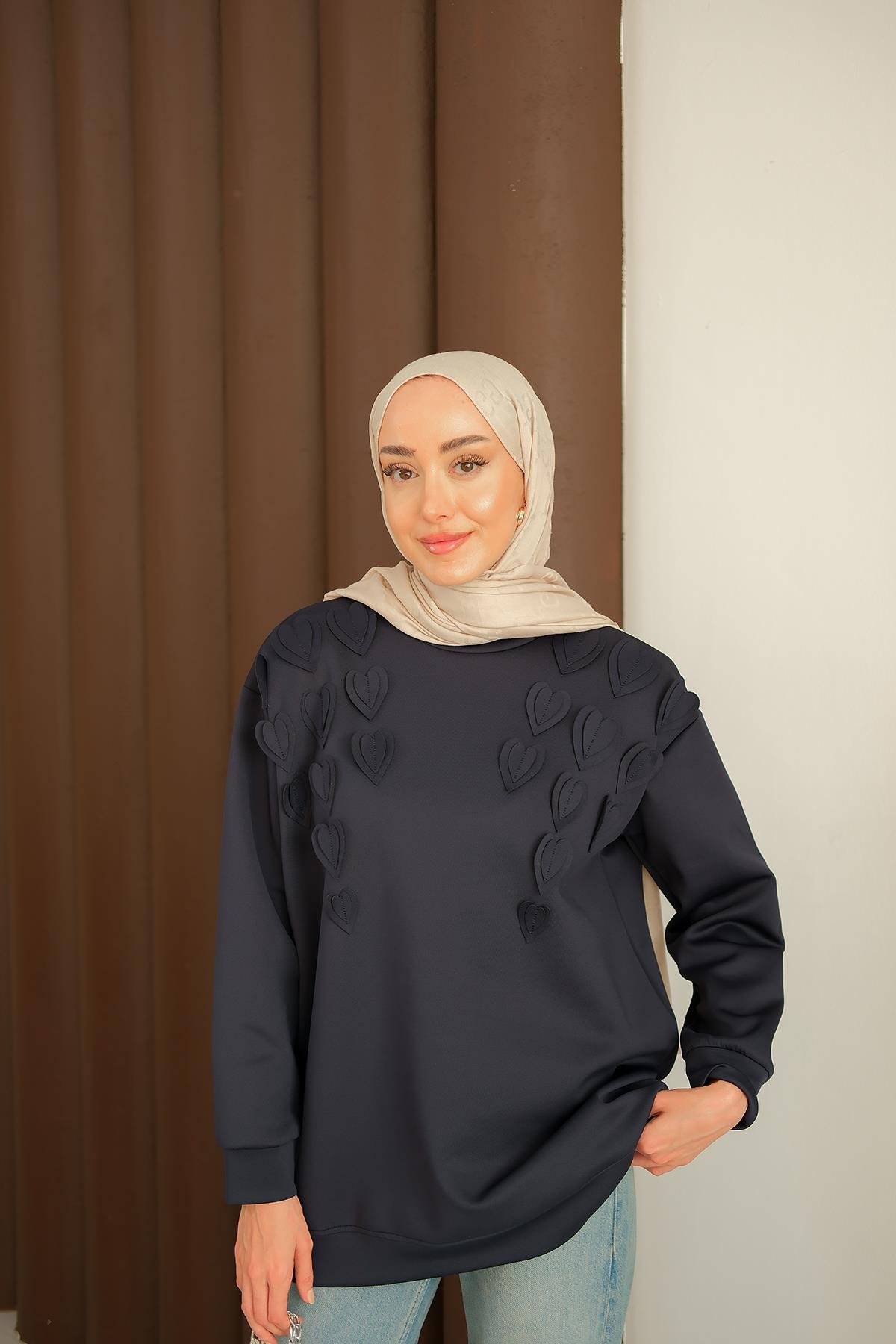 Kalp Detaylı Tunik Lacivert