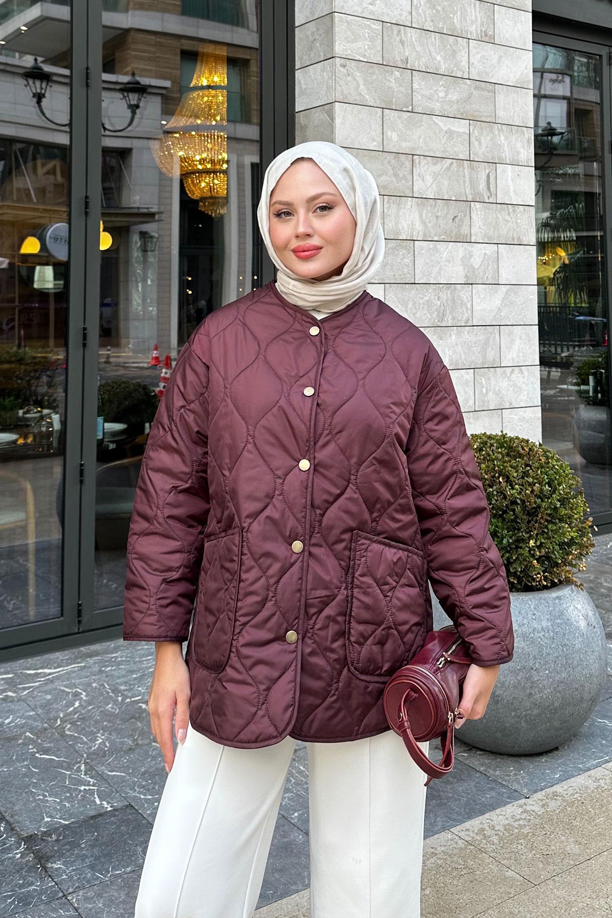 Kapitone Desen İnce Ceket Mürdüm