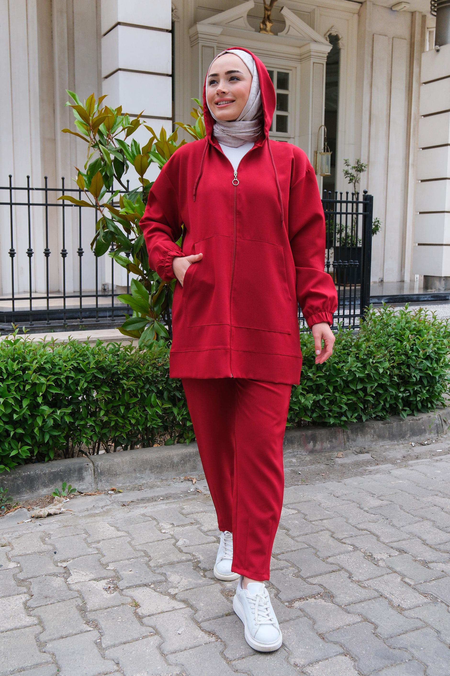 Kapüşonlu Çift Cepli İkili Takım  Bordo
