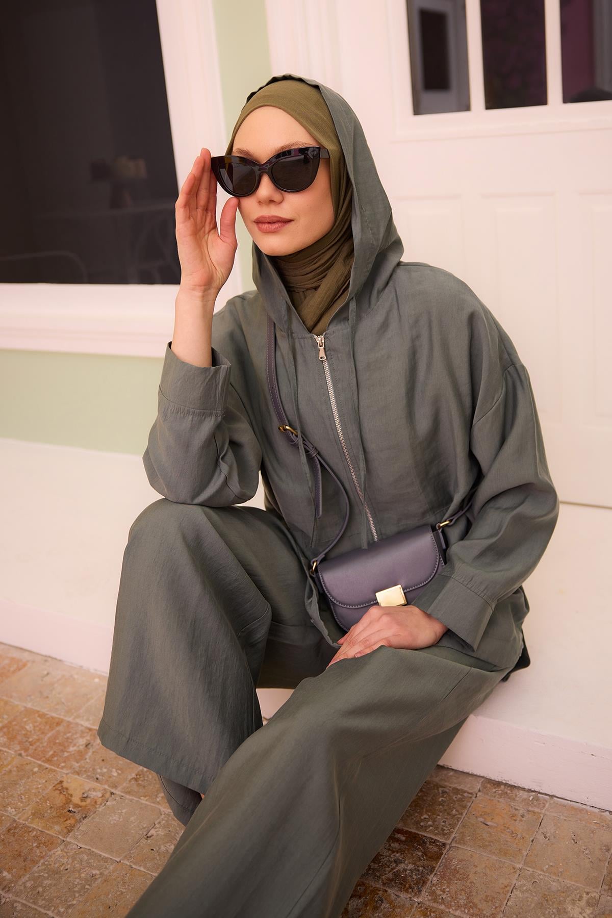 Kapüşonlu Modal Takım Yeşil