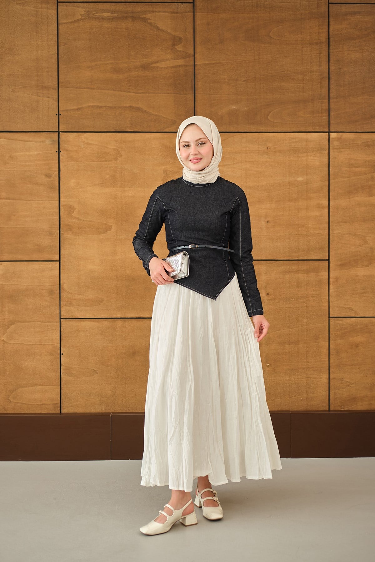 Kemer Bağlamalı Etekli Kot Takım Lacivert