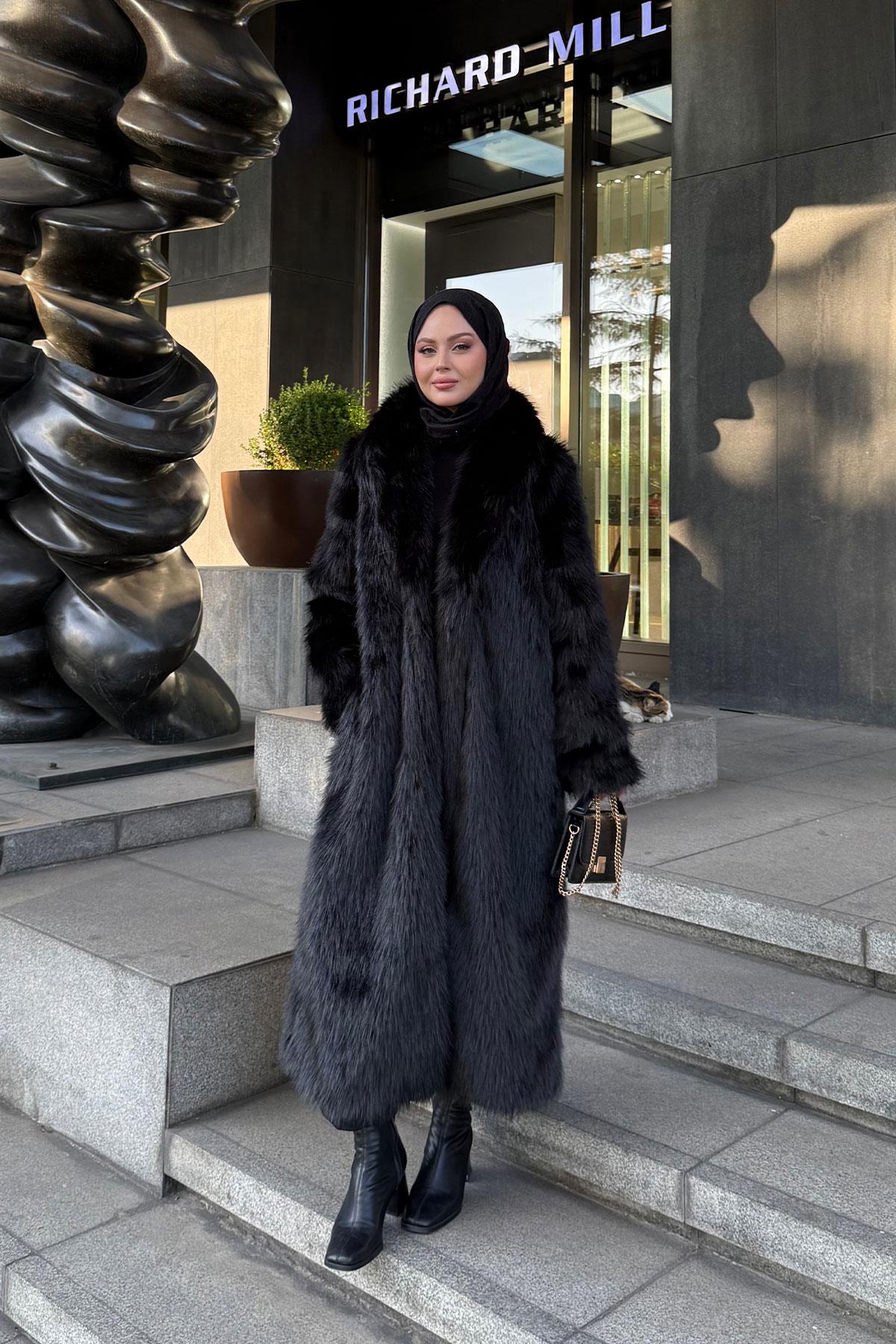 Kemer Detay Kürk Kaban Siyah