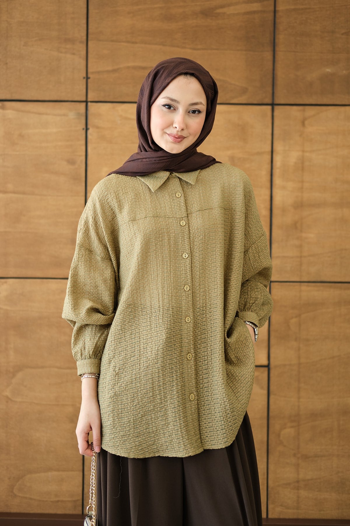 Kendinden Desenli Bel Bağlamalı Yağ Yeşil