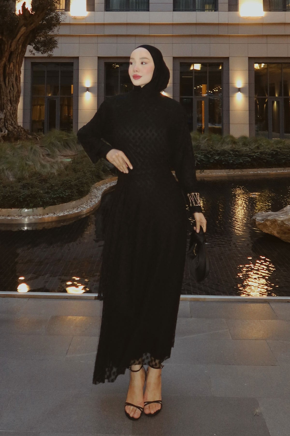 Kendinden Desenli Etekli Takım Siyah