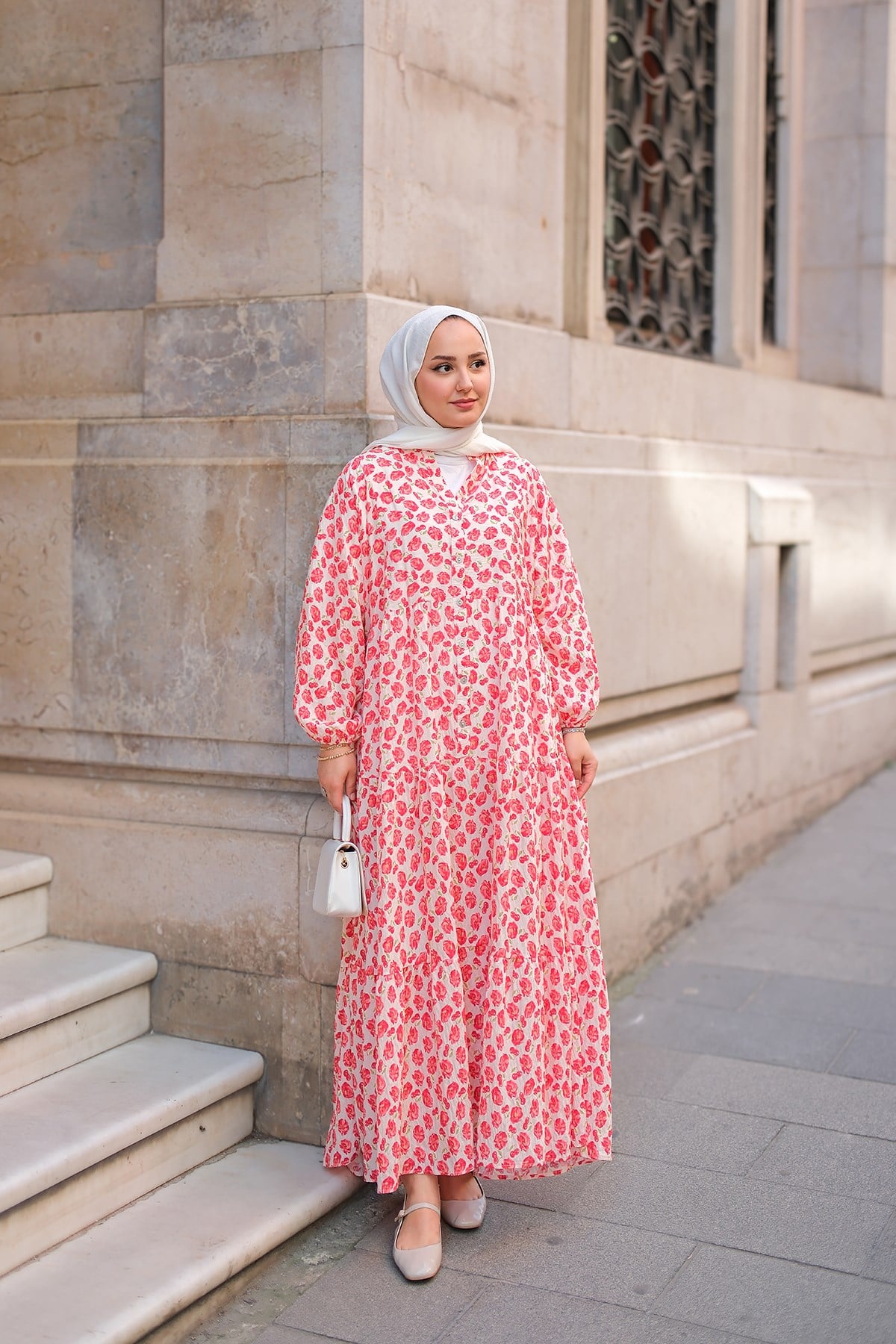 Kiraz Ve Çicek Desenli Elbise Kırmızı