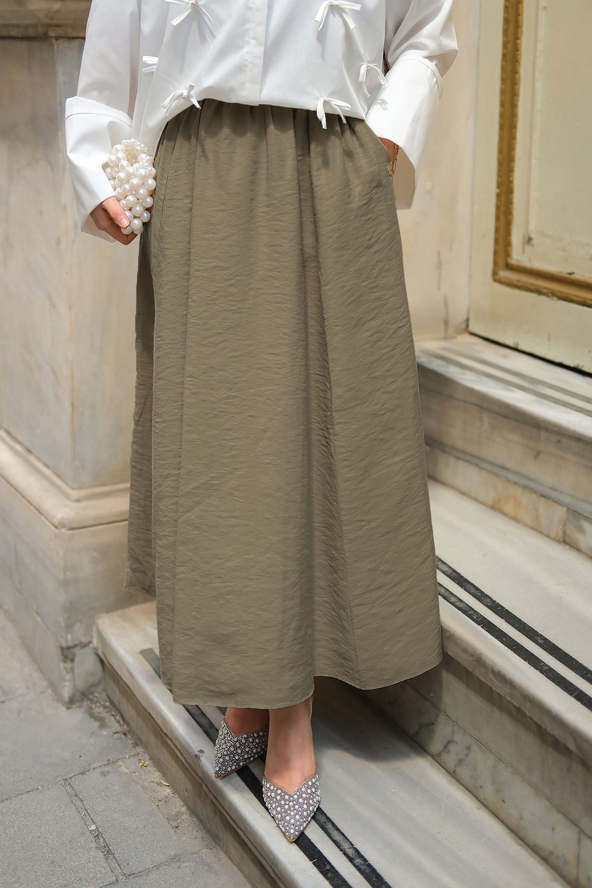 Kırışık Kloş Etek Açık Yeşil