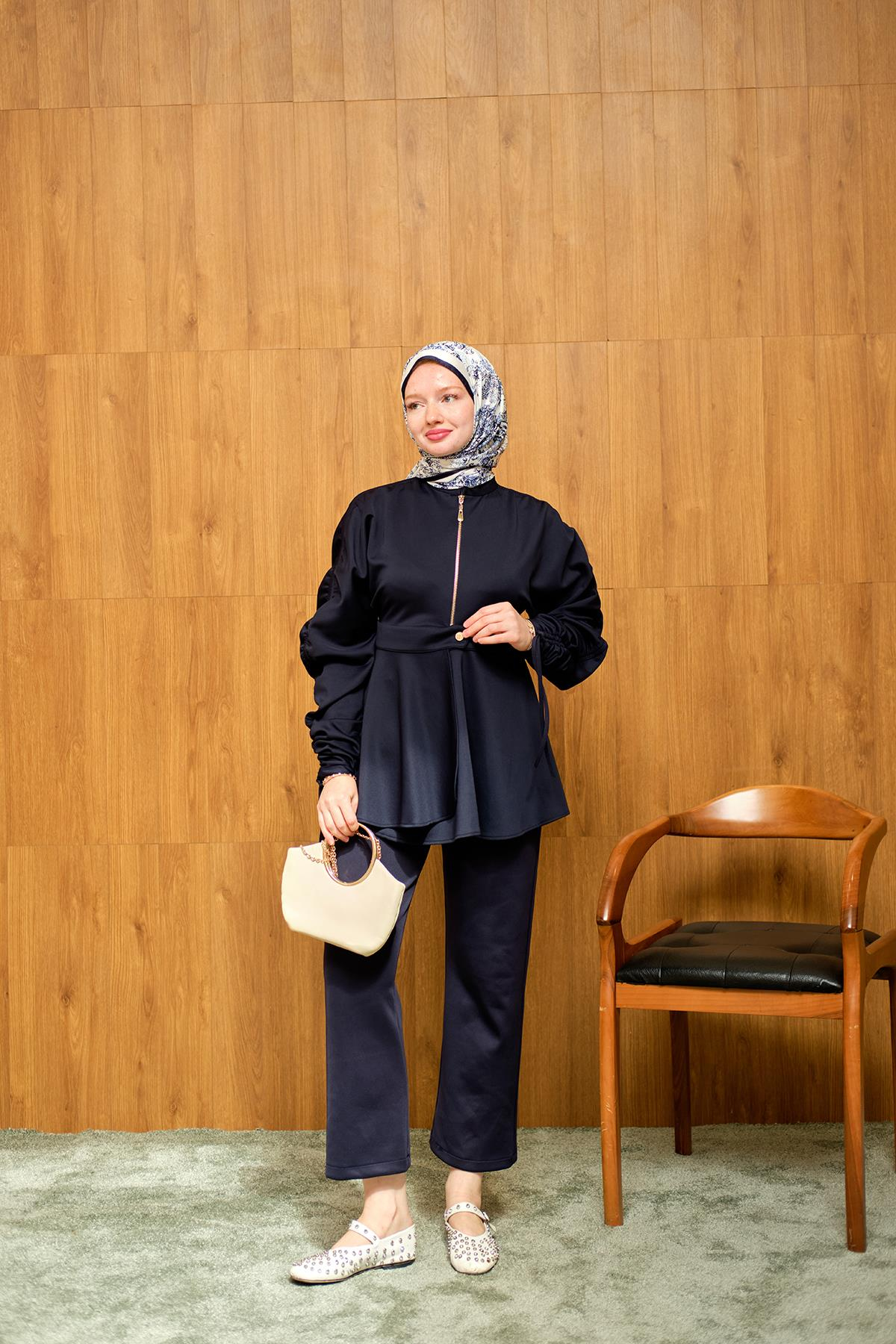 Kol Tünelli Beli Kemerli Takım Lacivert