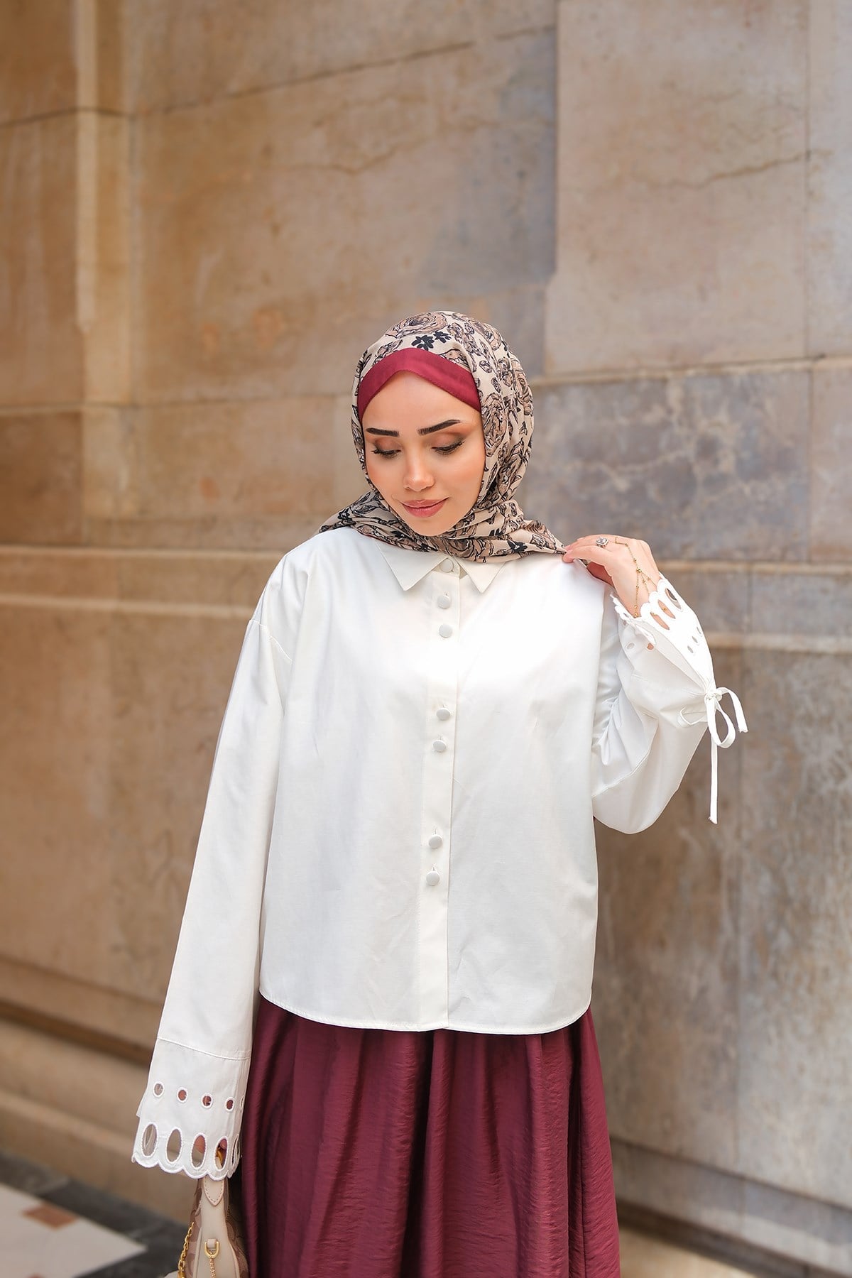 Kolu Nakışlı Gömlek Ekru
