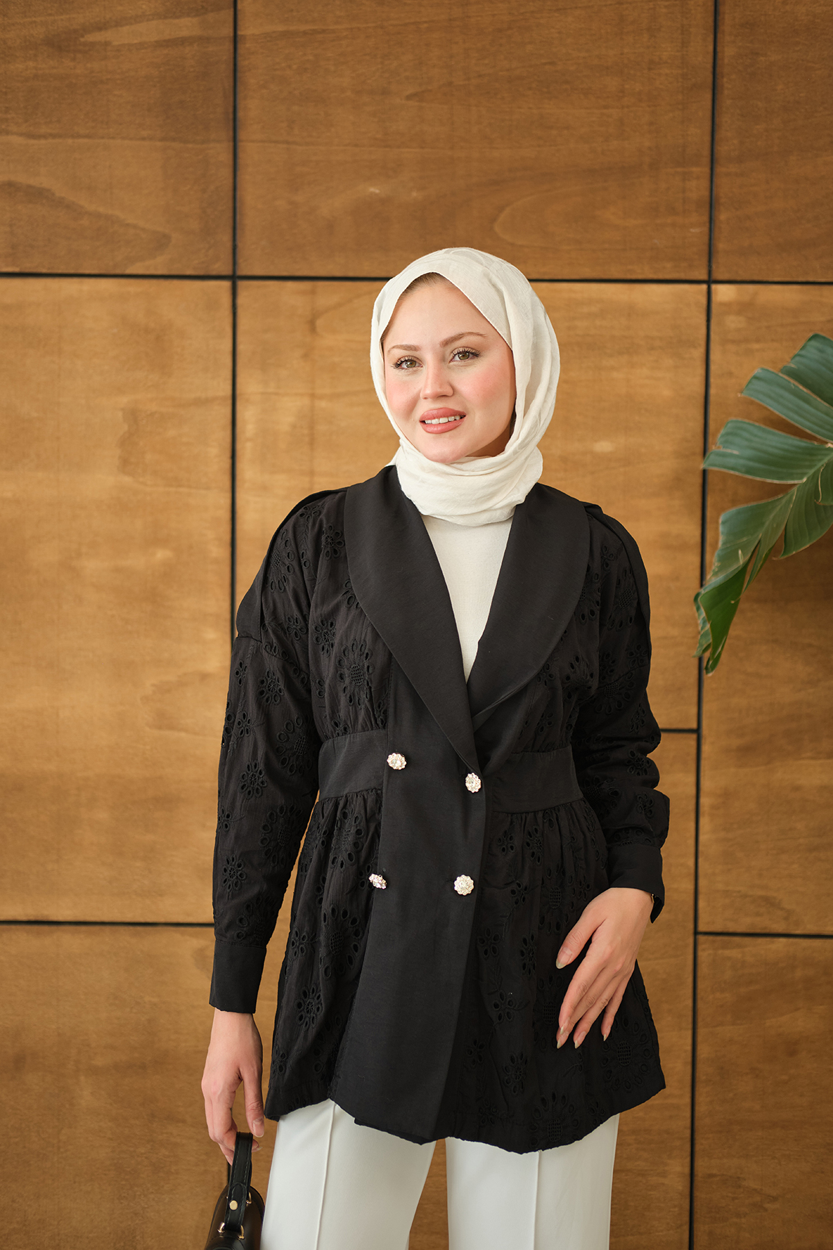 Kruvaze Yaka Brode Detaylı Apoletli Ceket Siyah