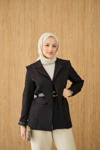 Kruvaze Yaka Cep Detay Ceket Siyah
