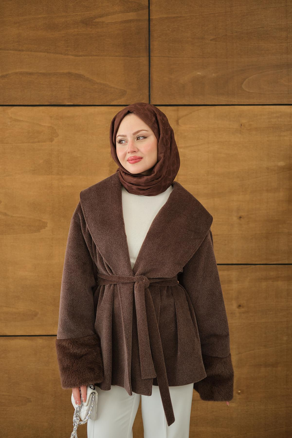 Kruvaze Yaka Kısa Ceket Kahverengi
