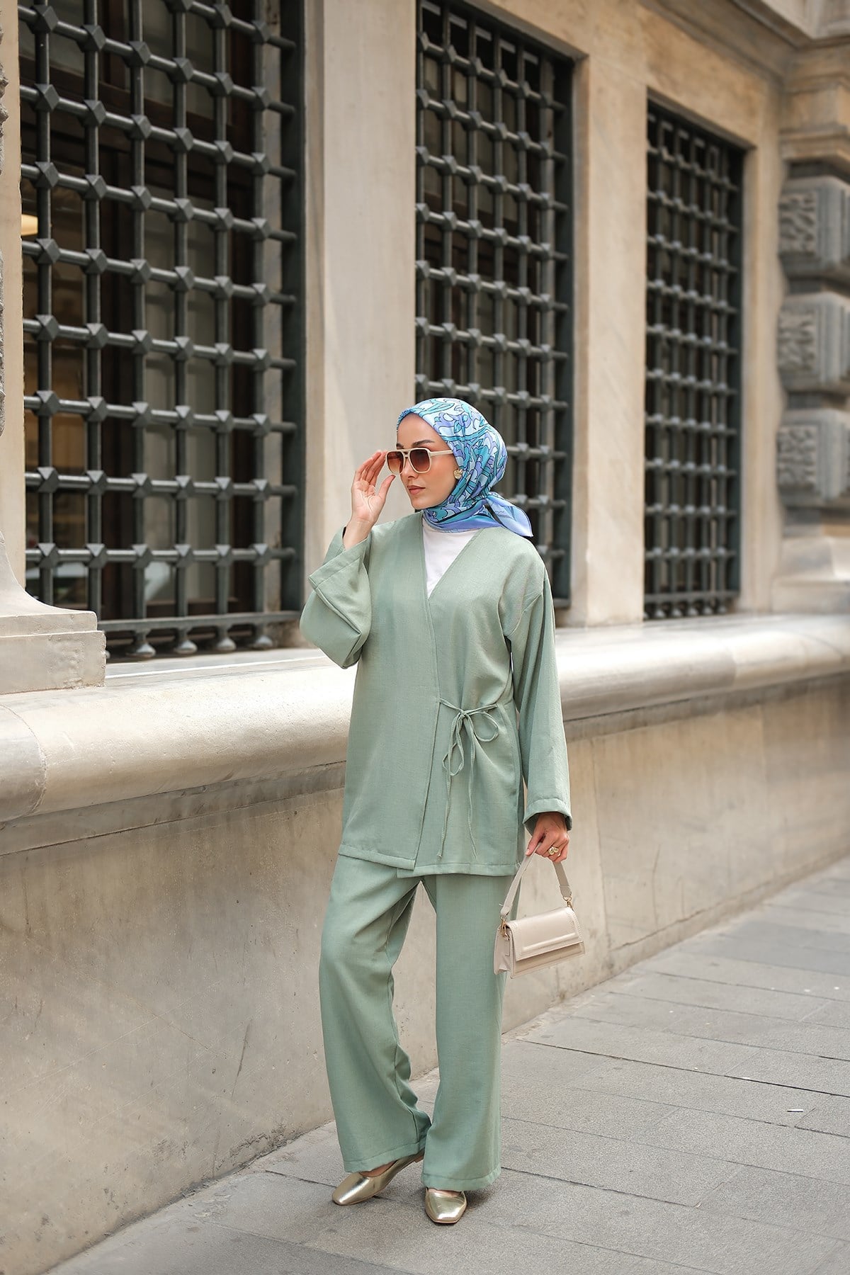 Kruvaze Yaka Takım Mint Yeşil