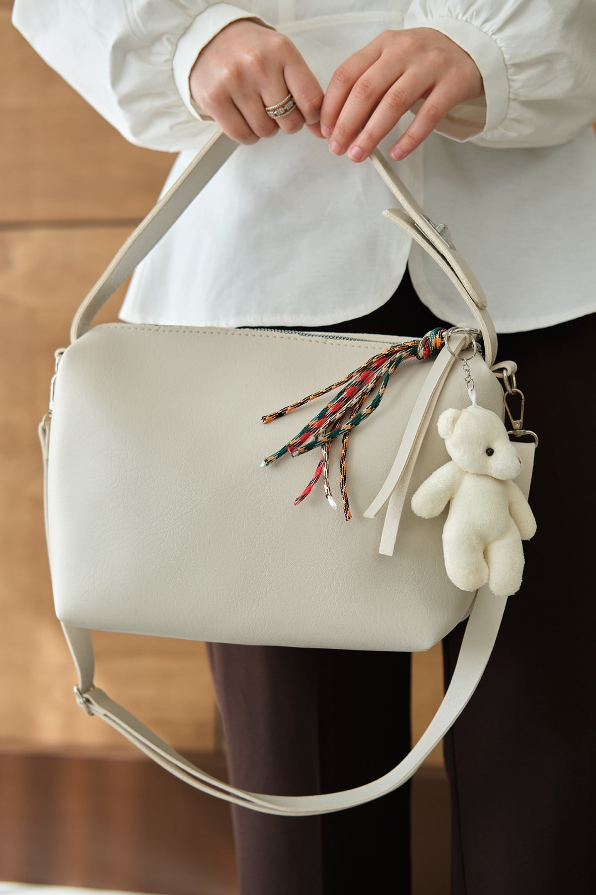 Küçük Ayıcık Ve Püskül Detay Çanta Krem