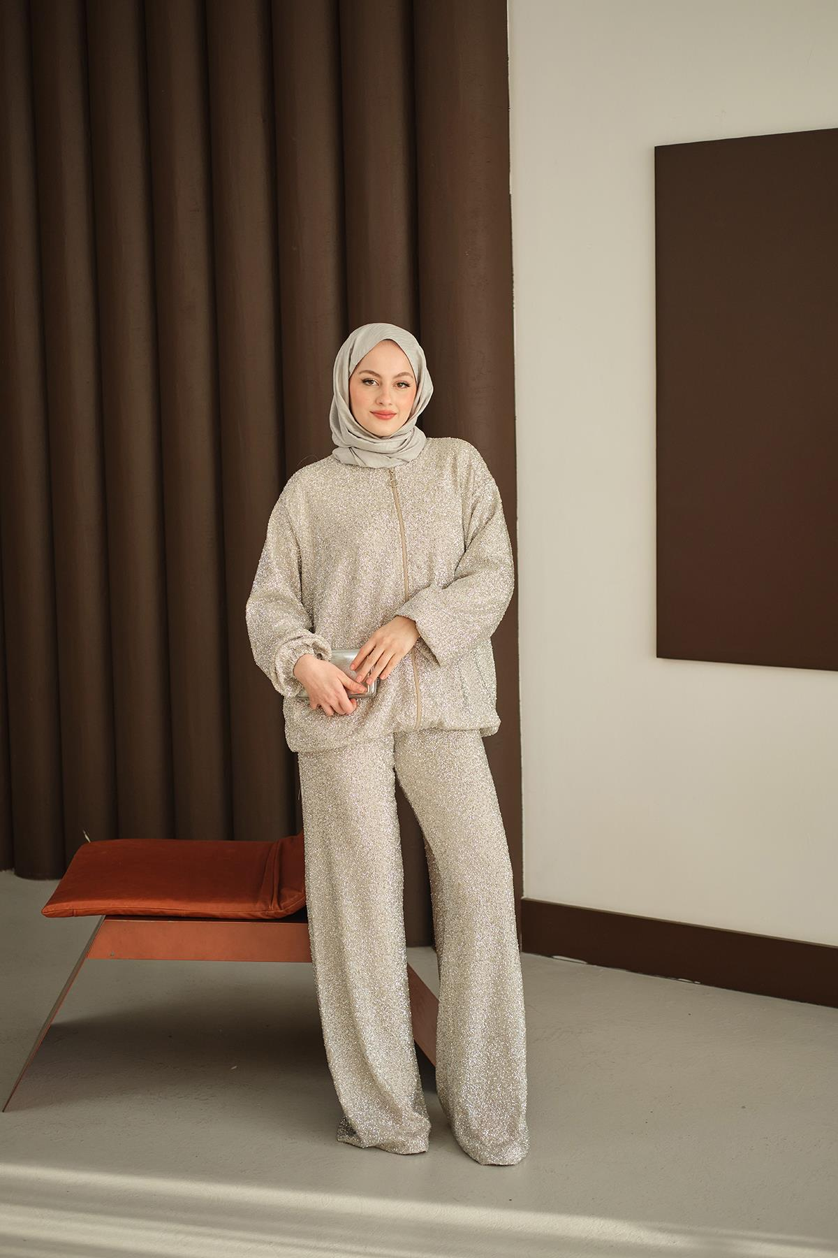 Küçük Boncuk Detaylı İkili Takım Gümüş