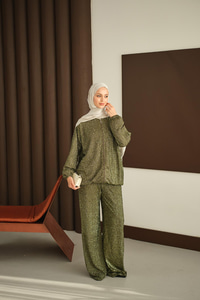 Küçük Boncuk Detaylı İkili Takım Yeşil
