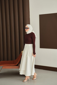 Saf beyaz rengiyle bu etek, her gardıropta kolayca kombin yapabileceğiniz zamansız bir parça. Düz desen yapısı, minimal şıklığı tercih edenler için ideal. Manken üzerindeki S-M bedende (36-38) tasarlanan model, farklı beden tiplerine rahatlıkla uyum sağlıyor.