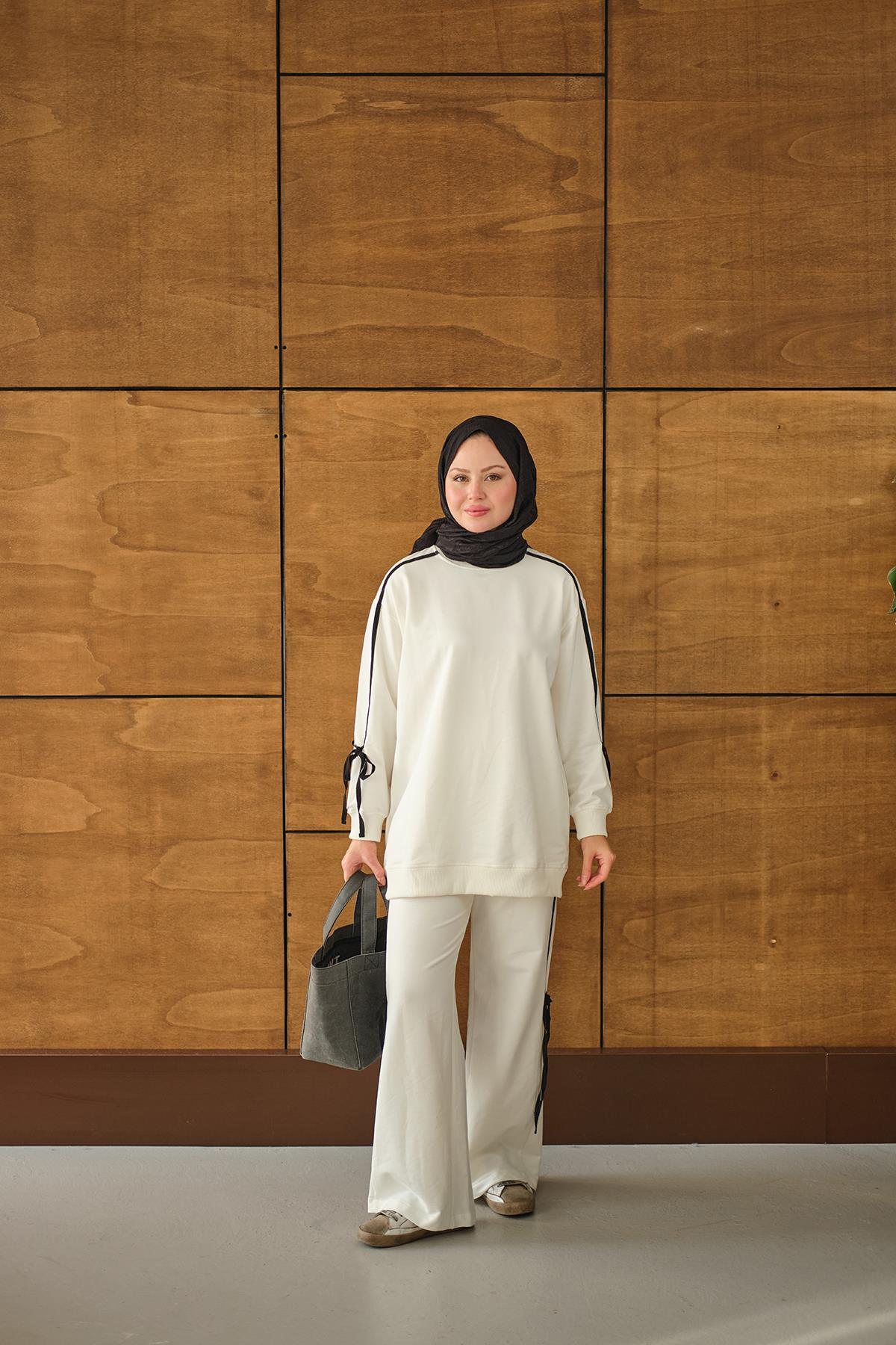 Kurdele Detay İkili Takım Beyaz