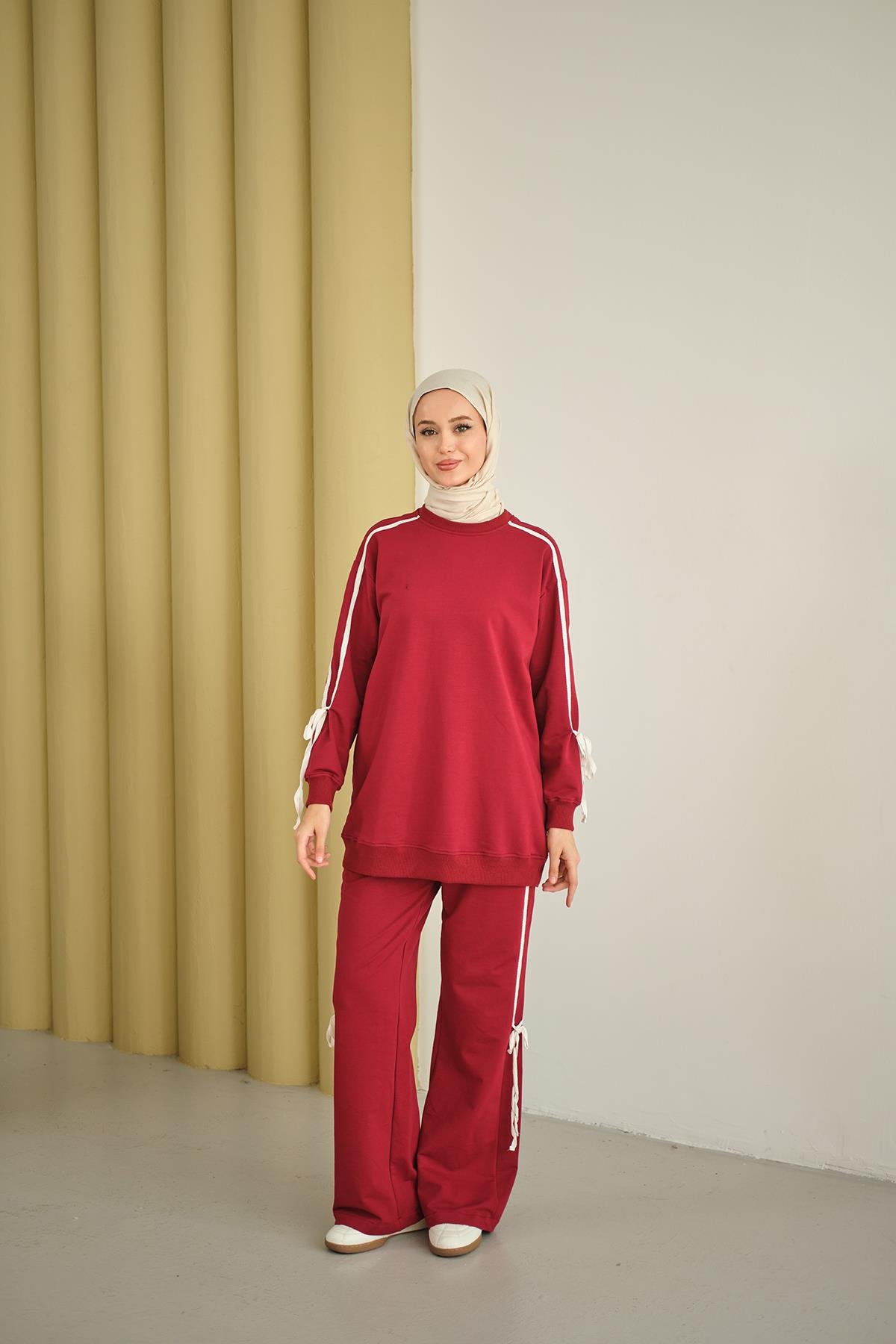 Kurdele Detay İkili Takım Bordo