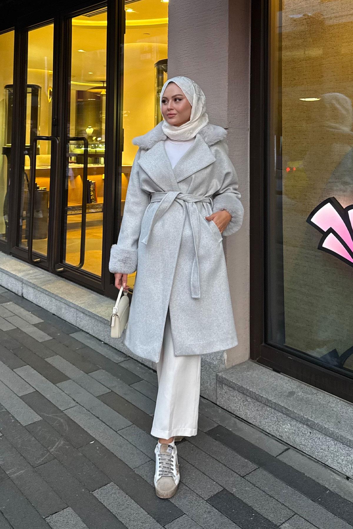Kürk Detay Kaban Gri
