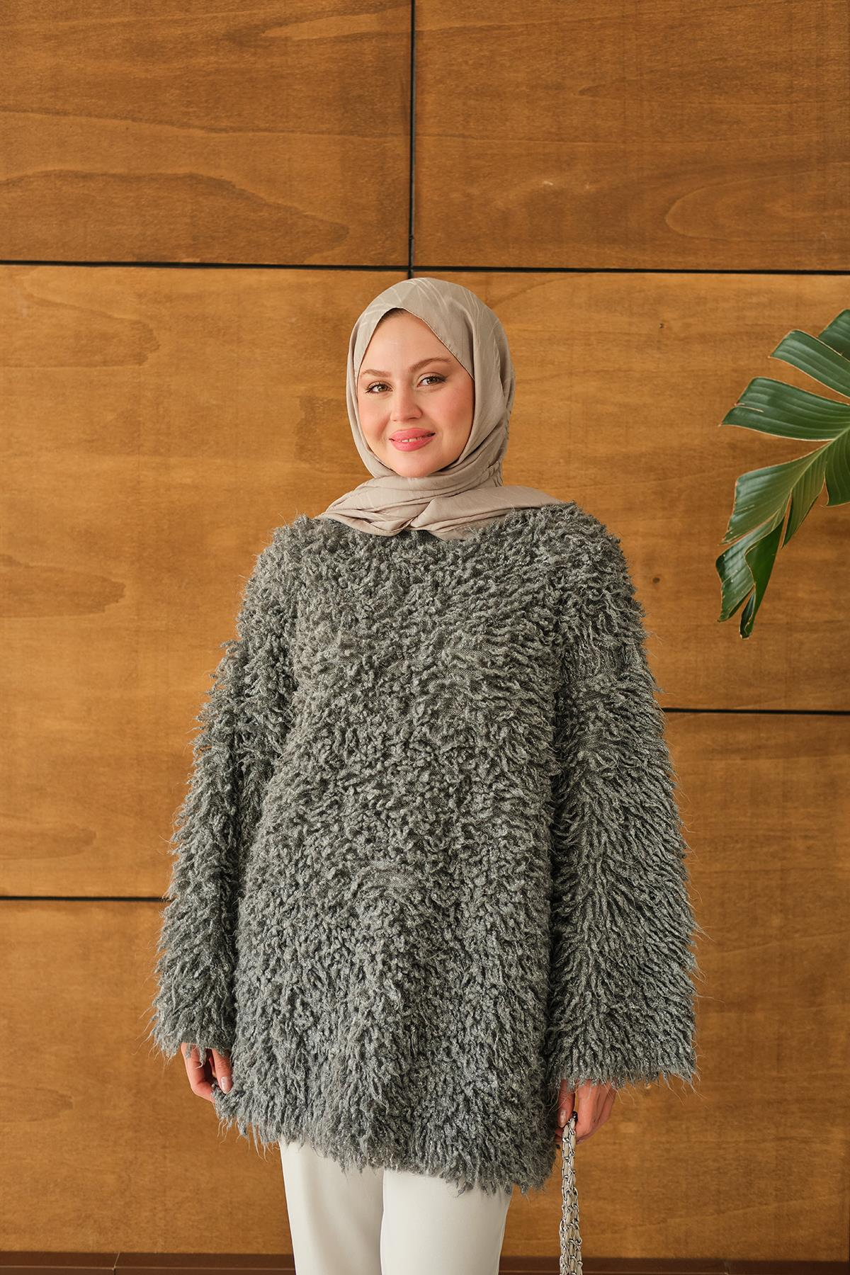 Kürk Detay Kazak Gri