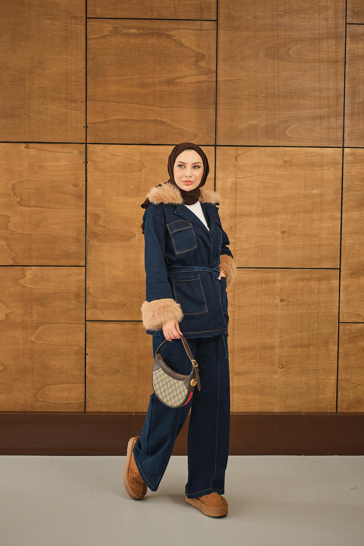 Kürk Detay Kot Takım Lacivert