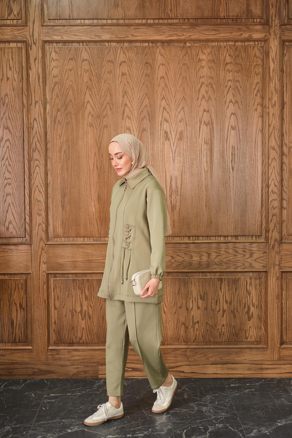 Kuş Gözü Detaylı Takım Fıstık Yeşil