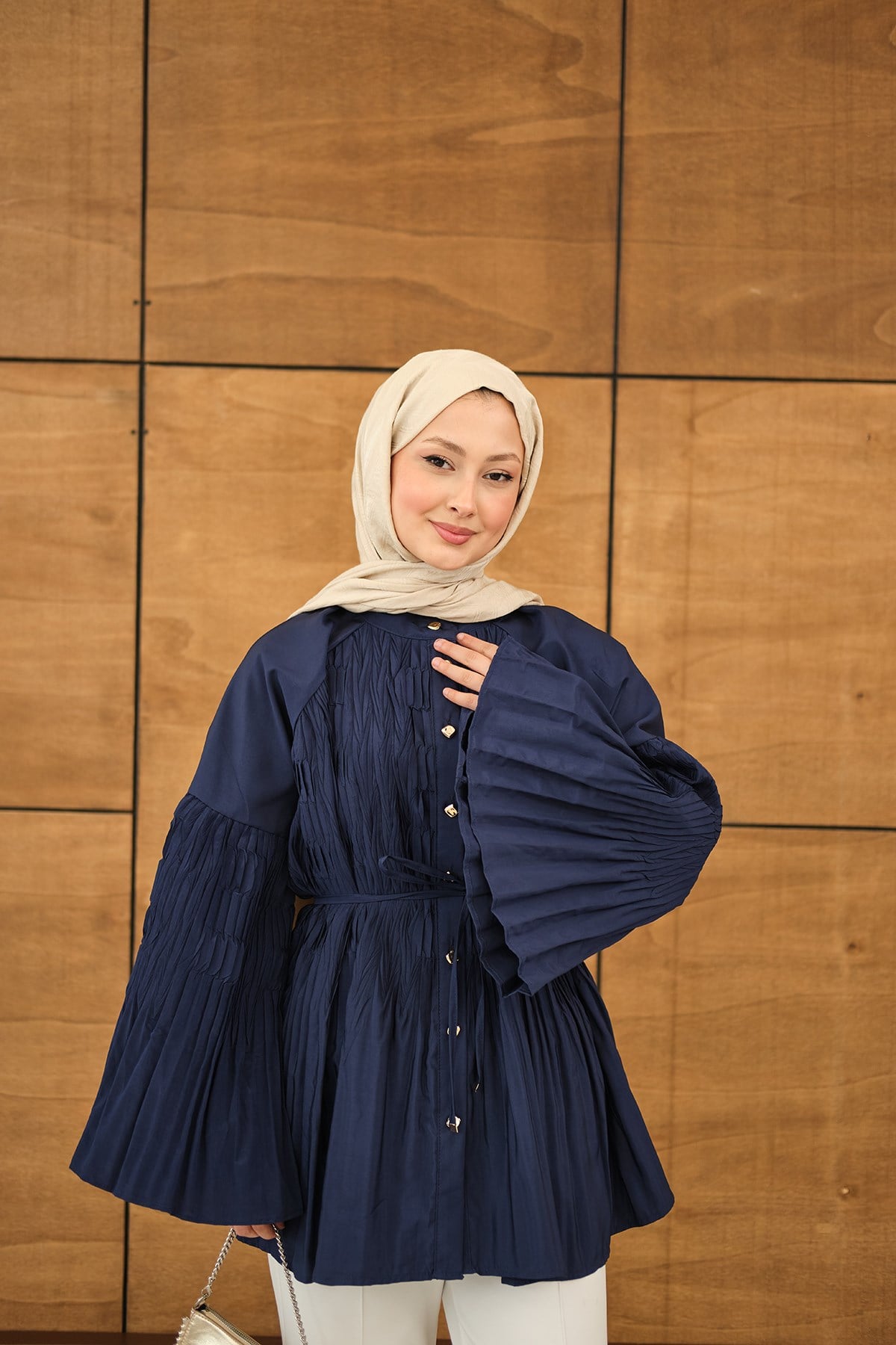 Martha Düğmeli Belden Bağlamalı Gömlek Lacivert