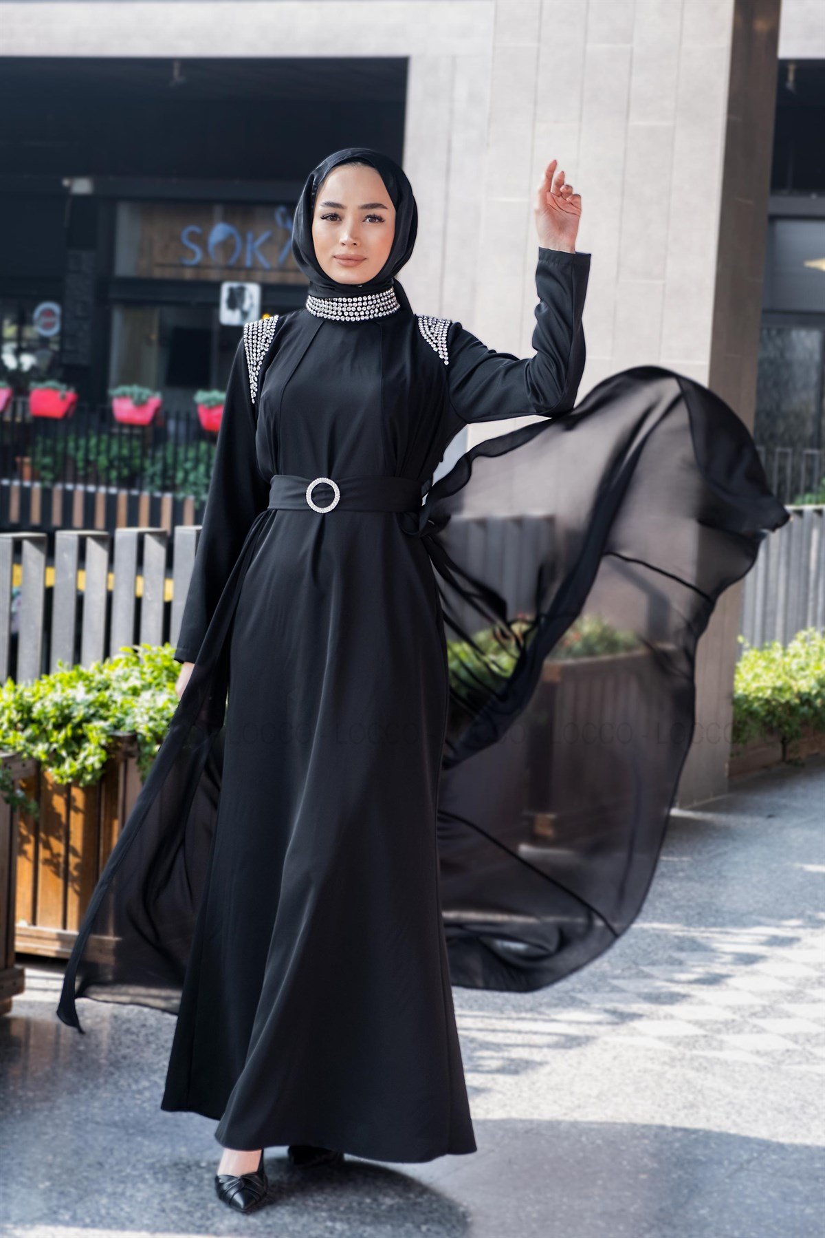 Uygun Fiyatlı OMUZ YAKA TASLI ABIYE SIYAH | Loccomoda.com