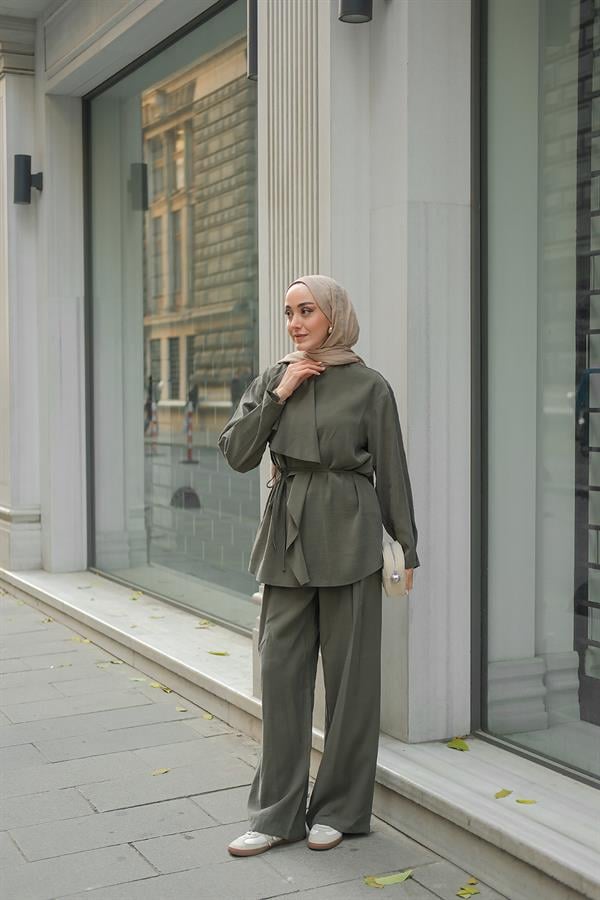 Ön Büzgülü İkili Takım Koyu Yeşil