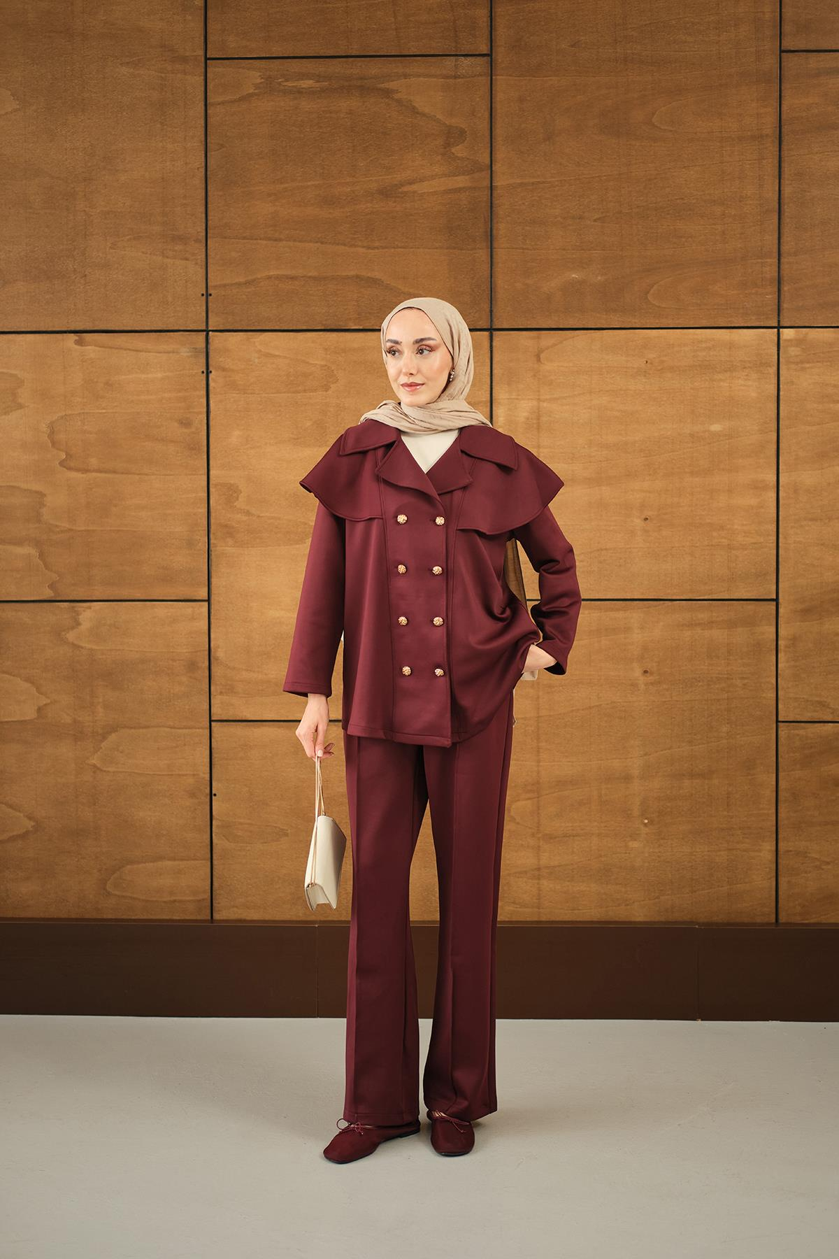 Ön Düğme Ve Biye Detaylı İkili Takım Bordo